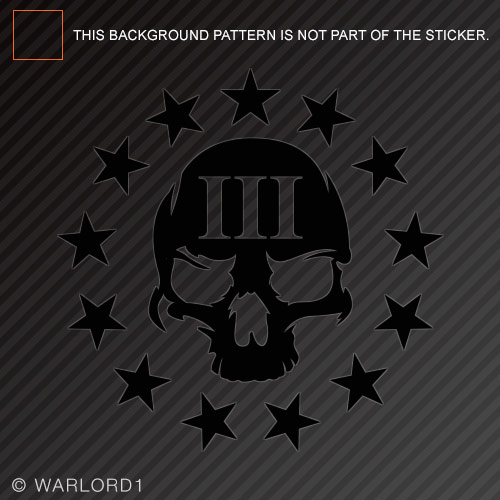3 Percenter Skull Sticker Die Cut Decal III 2a gun rights molon labe
